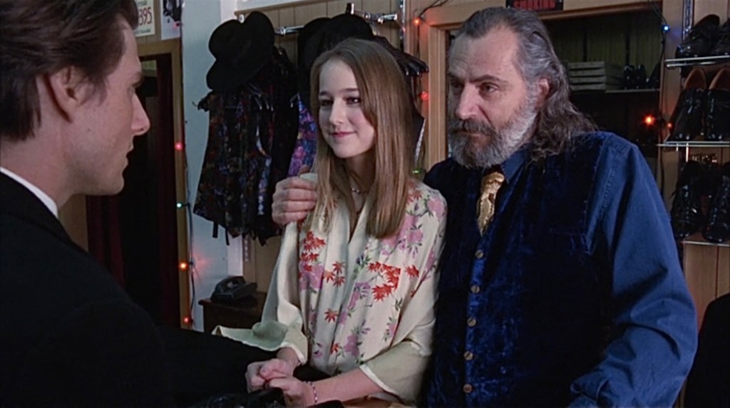 The random encounters throughout the movie aren’t random; they’re hints. Bill meets a prostitute named Domino who takes him to her apartment and settles into her bed beside a stuffed toy tiger (a seemingly out-of-place encounter). When he leaves, his pianist friend points him in the direction of the grand event, which he tells him he’ll need a cloak and mask for. While renting a costume for the event, Bill happens upon a bizarre situation where the costume-shop owner finds his young daughter in a compromising situation with two adult men, whom he locks in the room until he can finish up with Bill and then call the police. When Bill returns the next day to return the costume, the shop owner’s daughter appears with the two men from the night before, who obviously spent the night. When Bill asks why he didn’t call the police, the shop owner claims they came to an agreement instead and that Bill should let him know if he’s ever interested in their other services. All the while, the teenage girl stares seductively at Bill.